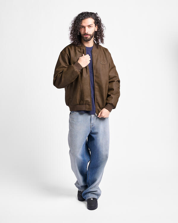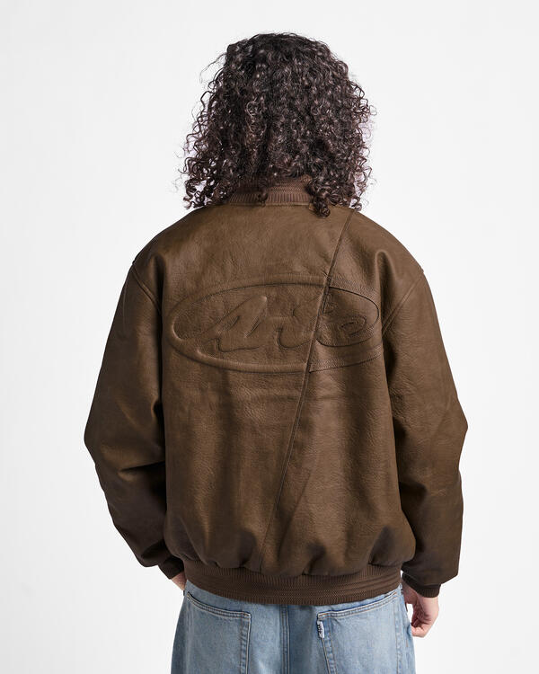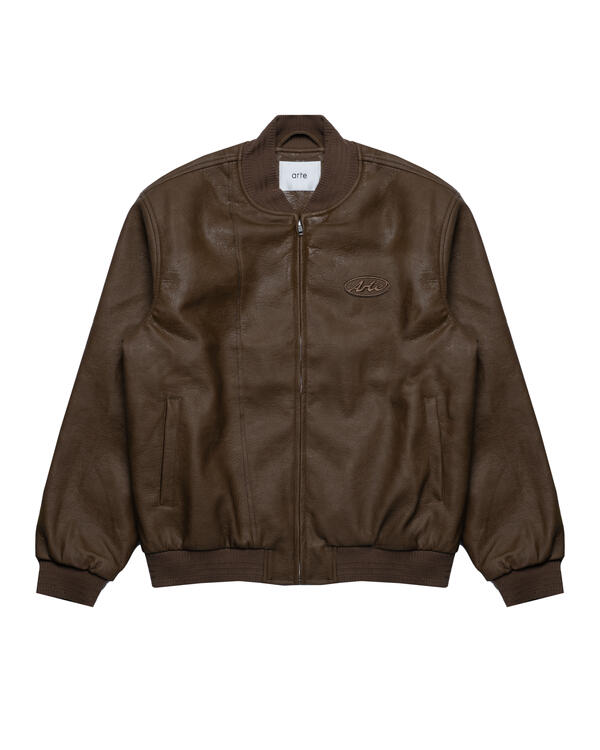 Diese braune Jacke aus Kunstleder ist ein Statement-Stück für jede Saison. Passend zum Thema der Kollektion zeigt die Jacke ein saisonales Arte-Logo auf dem Rücken, das durch eine diagonal verlaufende Naht geteilt wird. Die Jacke hat einen Reißverschluss, zwei Seitentaschen, elastische Abschlüsse und ist mit einem farblich abgestimmten Arte-Logo auf der linken Brustseite versehen.
