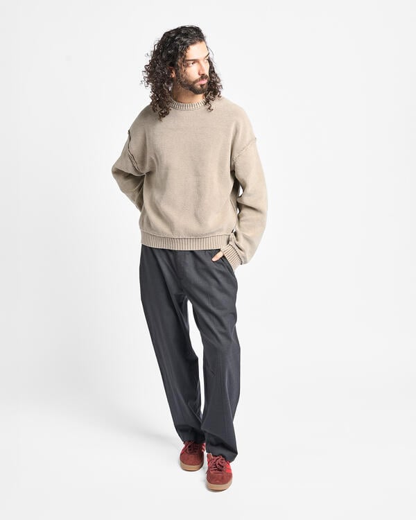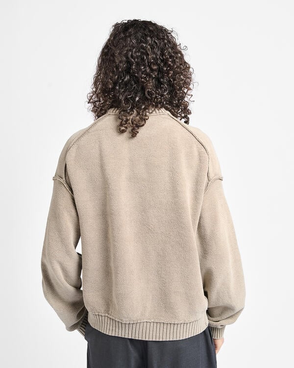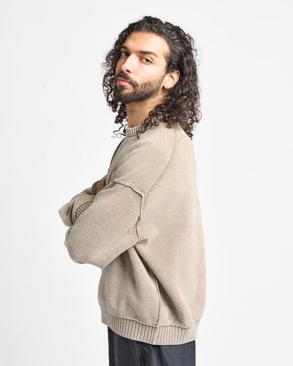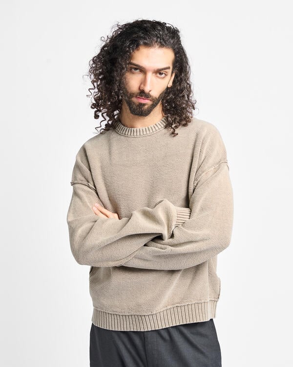 Ein Strickstück mit Rundhalsausschnitt und unverwechselbarem Look, hergestellt aus Baumwoll-Mohair mit einem verblassten Finish. Der einzigartige verblasste Look und das Mohair-Garn machen es zu einem großartigen Oberteil, das bei jedem Outfit im Mittelpunkt steht.
