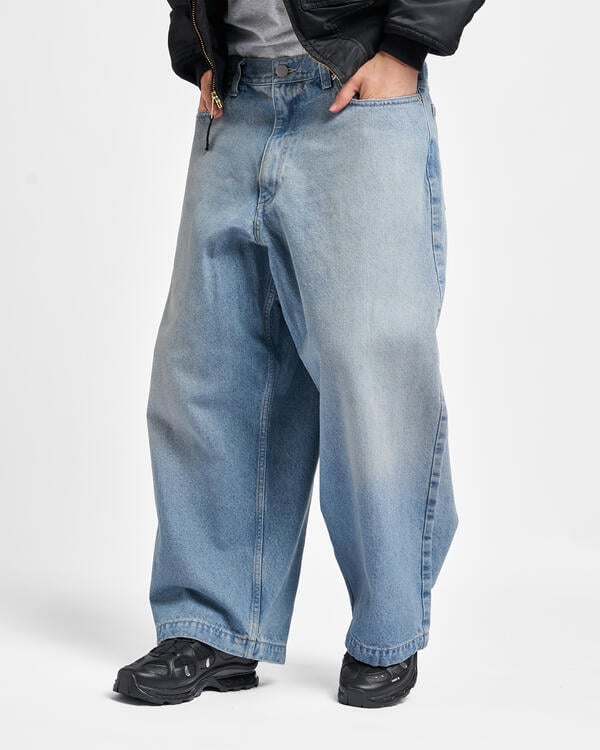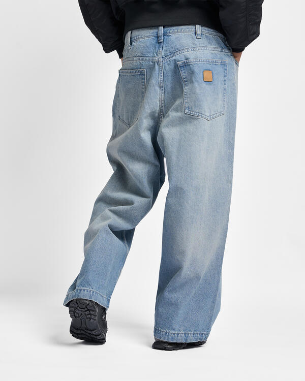 Eine 5-Pocket-Jeans, die eine moderne Neuinterpretation eines traditionellen Klassikers ist. Mit ihrem unverwechselbaren, weiten, geraden Schnitt, der eine Erweiterung der geraden Bein-Silhouette ist, hat diese Jeans ein modernes Finish.