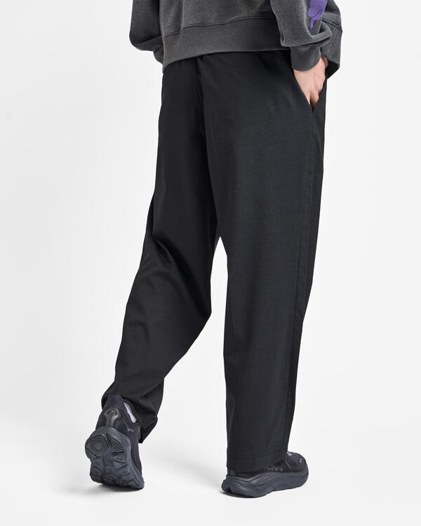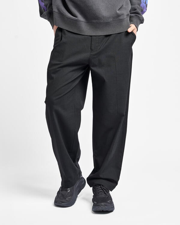 Ein Hose aus Polyesterwollmaterial mit einer Bügelfalte in der Mitte.