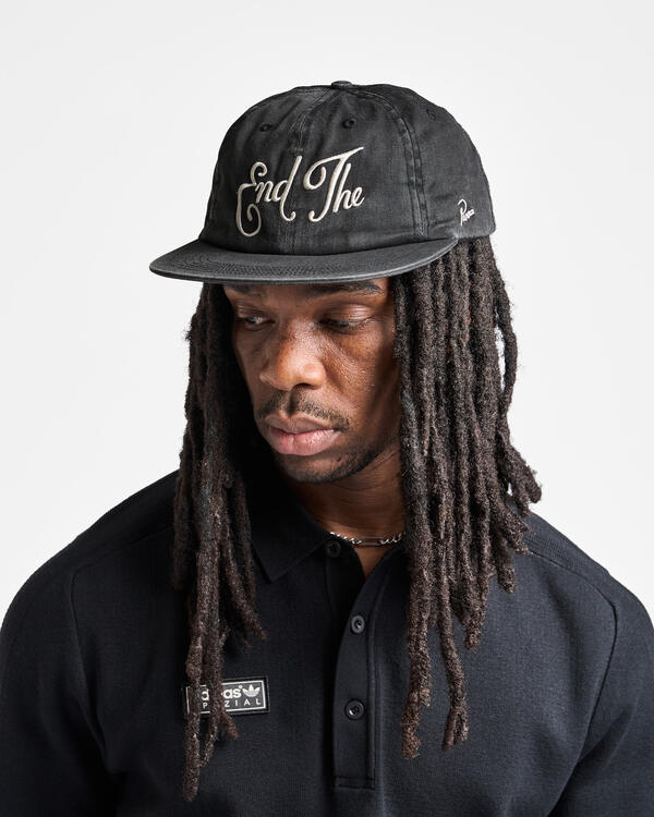 Unkonstruierte Mütze aus Baumwolltwill. Mit großer „End the“-Stickerei auf der Vorderseite und charakteristischem Logo an der Seite.