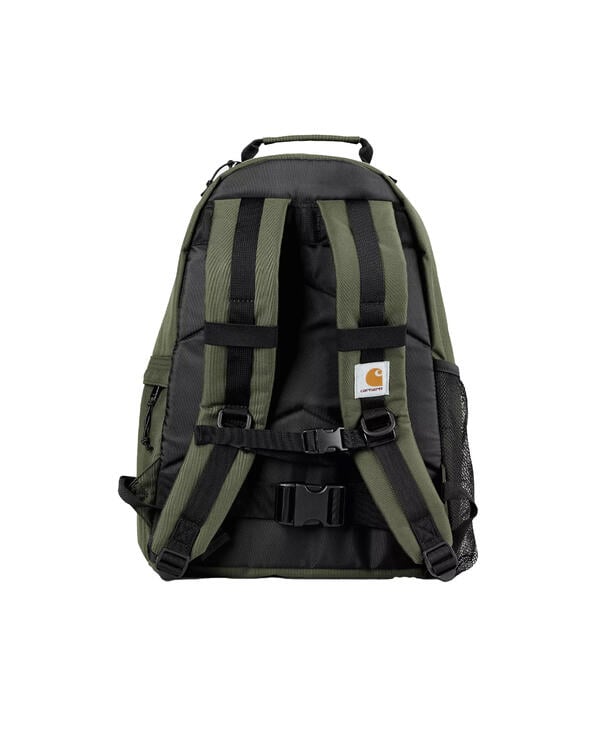 Der ungefütterte und wasserabweisende Kickflip Backpack besteht aus einem Canvas-Stoff, der aus recyceltem Polyestermix gefertigt wurde. Er ist sowohl mit Mesh- als auch mit Reißverschluss-Seitentaschen ausgestattet, während sich das Hauptfach mit einem Zwei-Wege-Reißverschluss schließen lässt. Die Schultergurte und der Rücken sind für ein angenehmeress Tragegefühl gepolstert, als zusätzliche funktionale Details dienen mehrere Schnallen und elastische Skateboard-Gurte auf der Vorderseite.