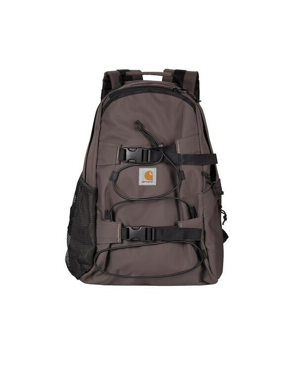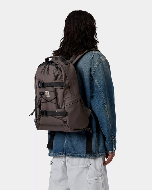 Der ungefütterte und wasserabweisende Kickflip Backpack besteht aus einem Canvas-Stoff, der aus recyceltem Polyestermix gefertigt wurde. Er ist sowohl mit Mesh- als auch mit Reißverschluss-Seitentaschen ausgestattet, während sich das Hauptfach mit einem Zwei-Wege-Reißverschluss schließen lässt. Die Schultergurte und der Rücken sind für ein angenehmeress Tragegefühl gepolstert, als zusätzliche funktionale Details dienen mehrere Schnallen und elastische Skateboard-Gurte auf der Vorderseite.