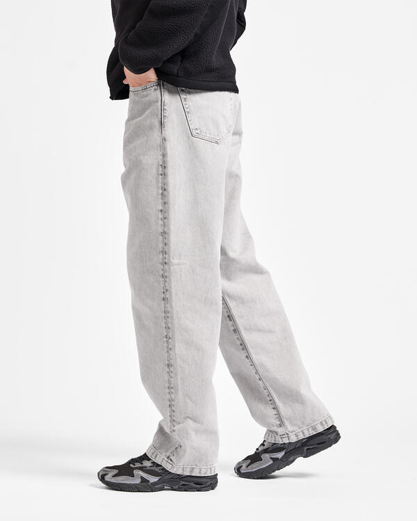 Die Landon Pant hat ein Five-Pocket-Design und besteht aus einem schweren Baumwolldenim, der durch eine Stone-Waschung eine ausgeblichene Optik erhält. Die Hose hat eine lockere Taper-Passform mit einer normalen Bundhöhe. Auf der Gesäßtasche befindet sich ein gewebtes Square Label.