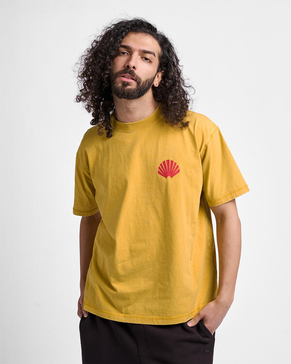 T-Shirt mit Rundhalsausschnitt in entspannter Unisex-Passform. Detailliert mit dem New Amsterdam Logo im Ripple-Siebdruck auf Vorder- und Rückseite. Dieses T-Shirt ist aus 220 GSM stoffgefärbter Baumwolle hergestellt.
